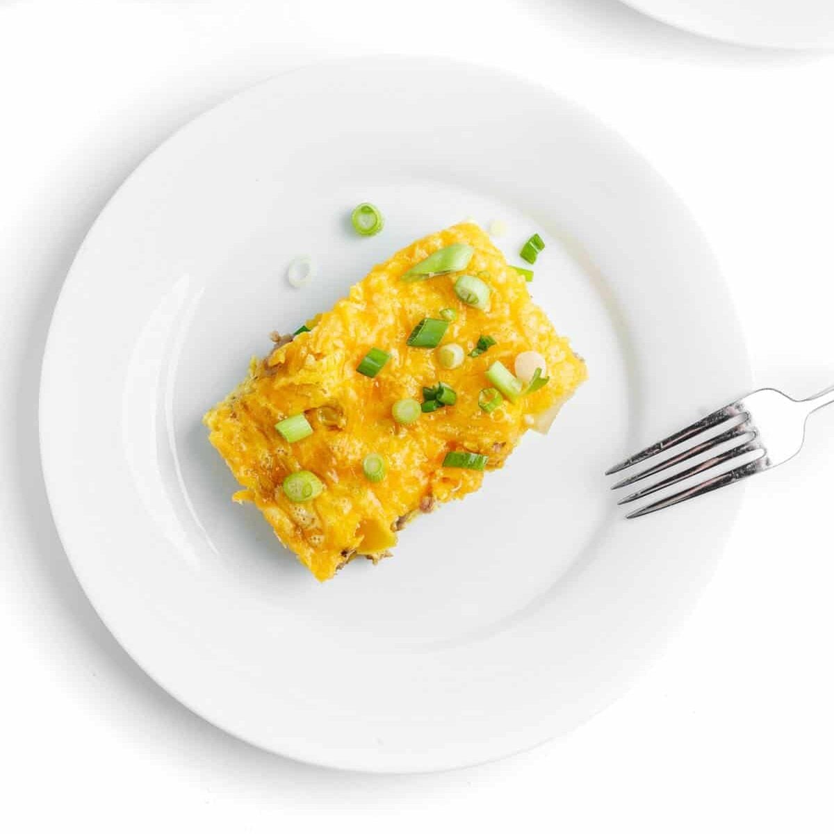 This low carb, high protein egg bake breakfast recipe is made with Italian sausage, bell peppers, and sharp cheddar cheese. Perfect for prepping ahead of time!