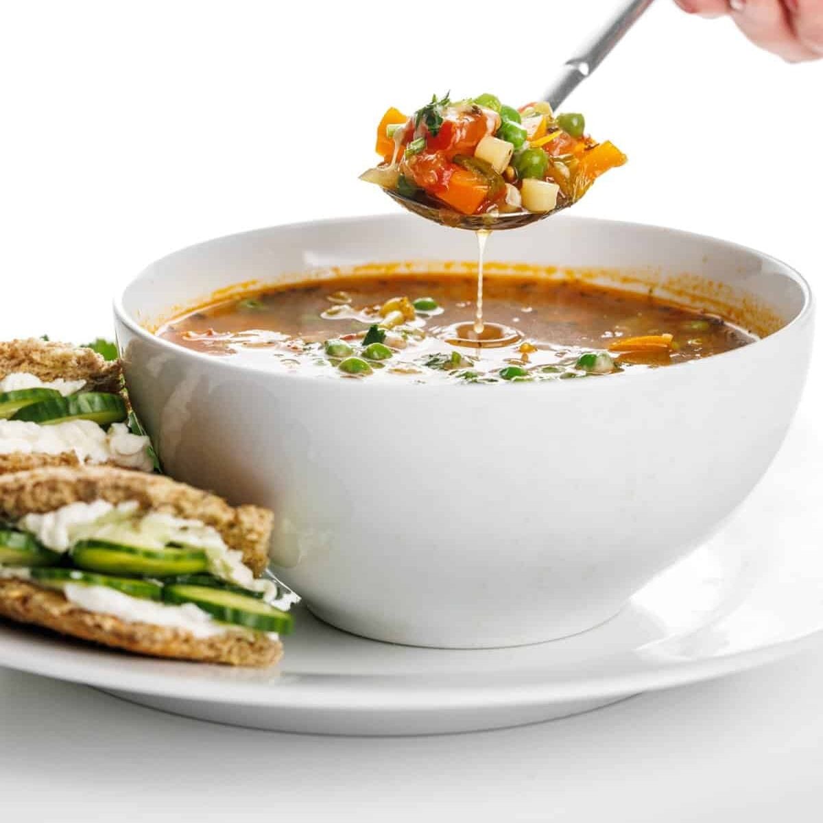 I also made some quick and delicious cucumber sandwiches to eat alongside my Vegetable Soup, what fresh greenhouse grown veggies will you use in yours? If you’re looking for more soup recipes like this, make sure you check out my Minestrone Soup.